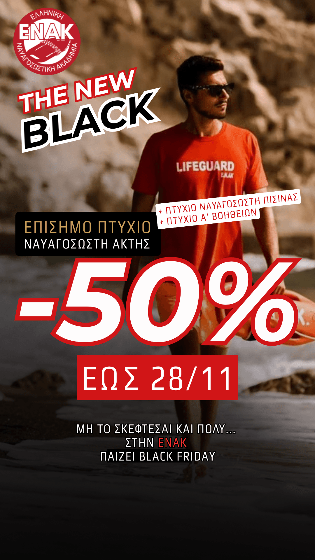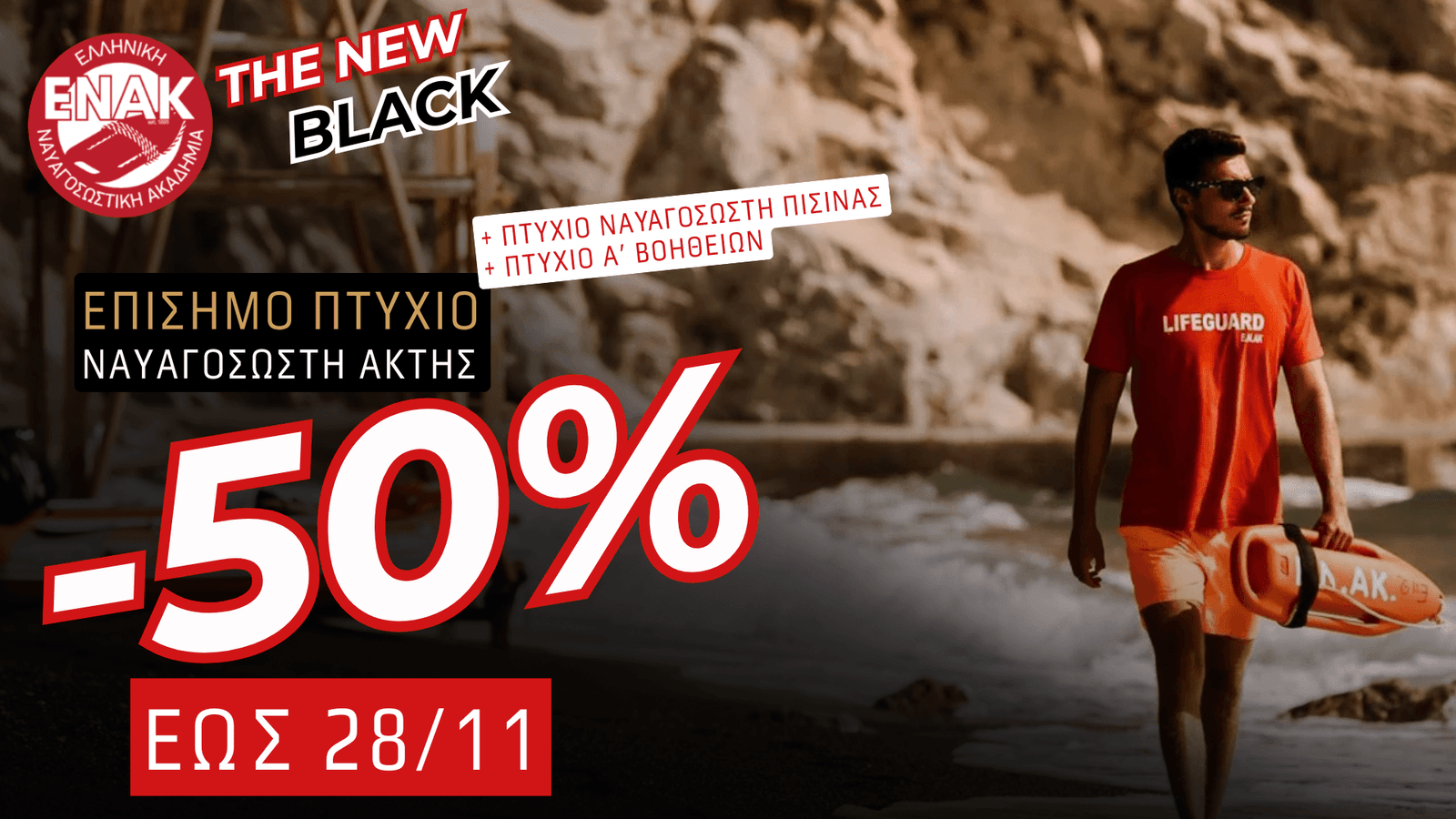 Από 1 έως 28 Νοεμβρίου έχεις -50% σε όλα τα προγράμματα εκπαίδευσης ναυαγοσωστικής (Ακτής, Πισίνας, Α’ Βοηθειών).